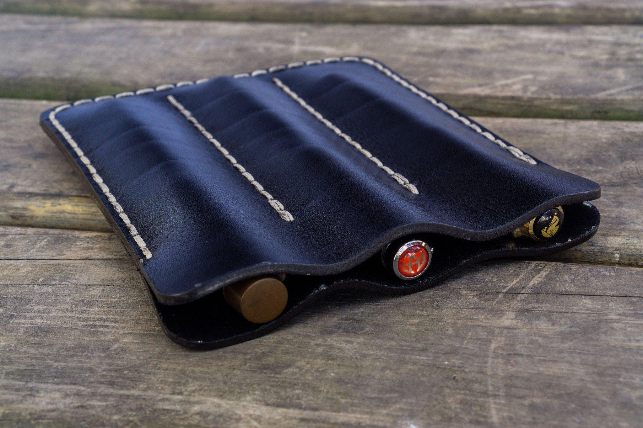 Leather Triple Fountain Pen Case / Pen Pouch - Black