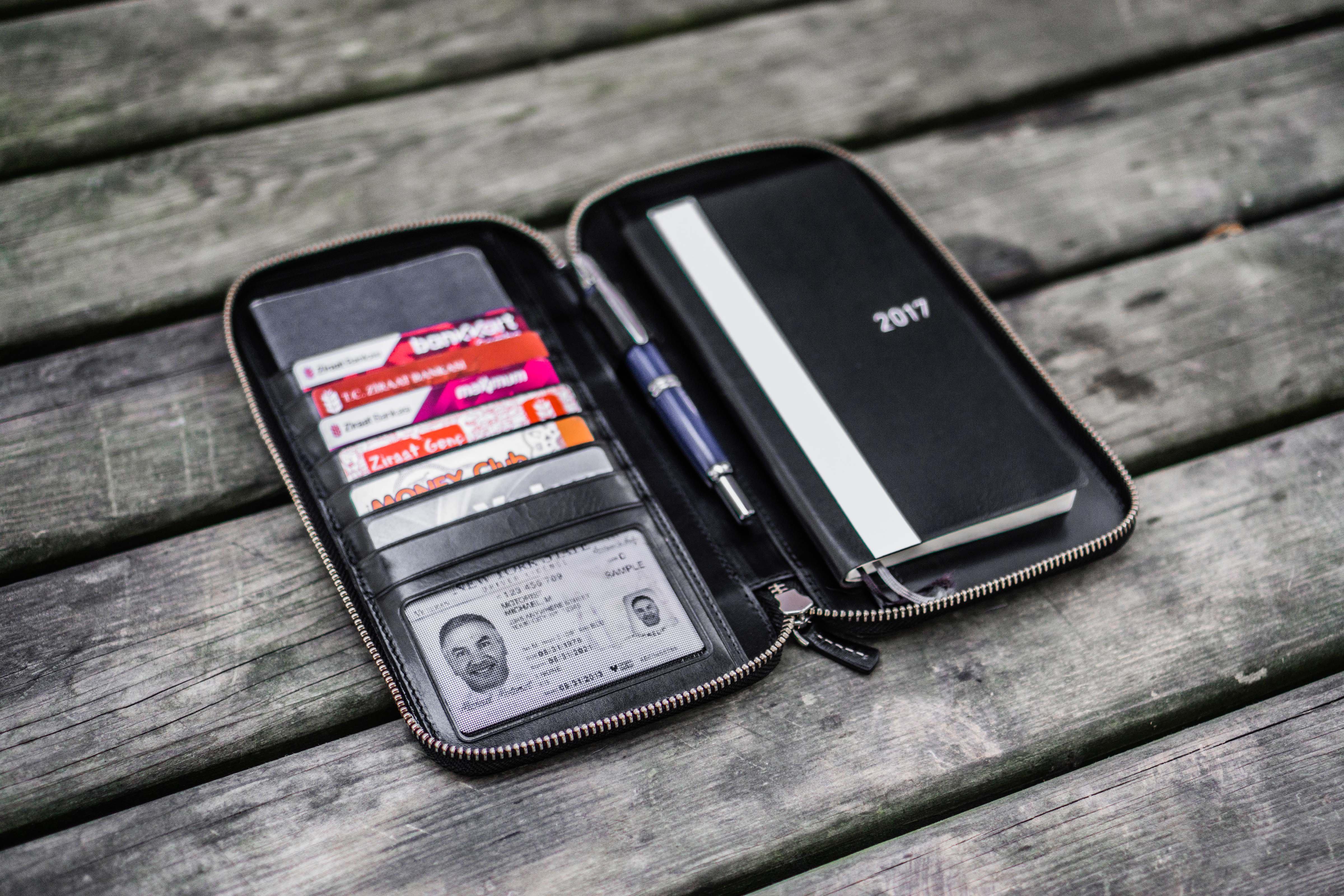 Our new and improved black Leather Zippered Hobonichi Weeks Mega Cover features a left panel that can fit 6 credit card size pockets, one long pocket for your notebook and rulers, one transparent ID card holder, and one large pocket which is great for keeping your cash, receipts or a mobile phone (iPhone 7 plus fits easily).