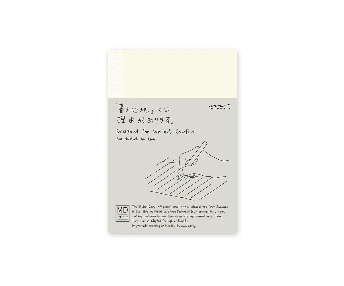 The notebook features MD PAPER, their original paper that prevents smearing and bleed-through for comfortable writing, especially for fountain pen fanatics.
