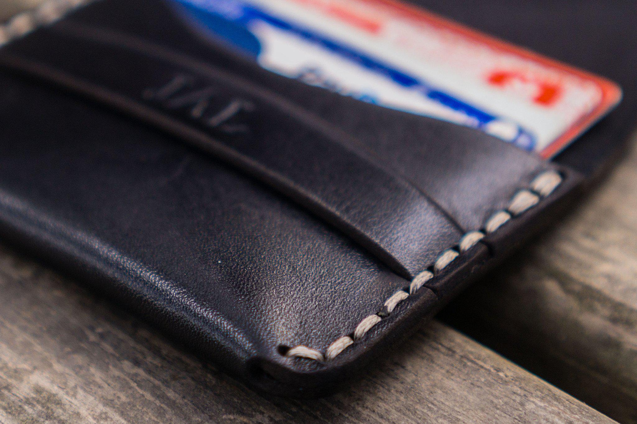 Keep your bank and credit cards safely together with the handmade basic flap leather wallet and credit card holder. There's one internal card pocket that holds up to 5-6 cards. With a stylish minimalist design, its perfect for slipping into your pocket or bag and using as a leather business card wallet. You also have the option of personalizing with initials.