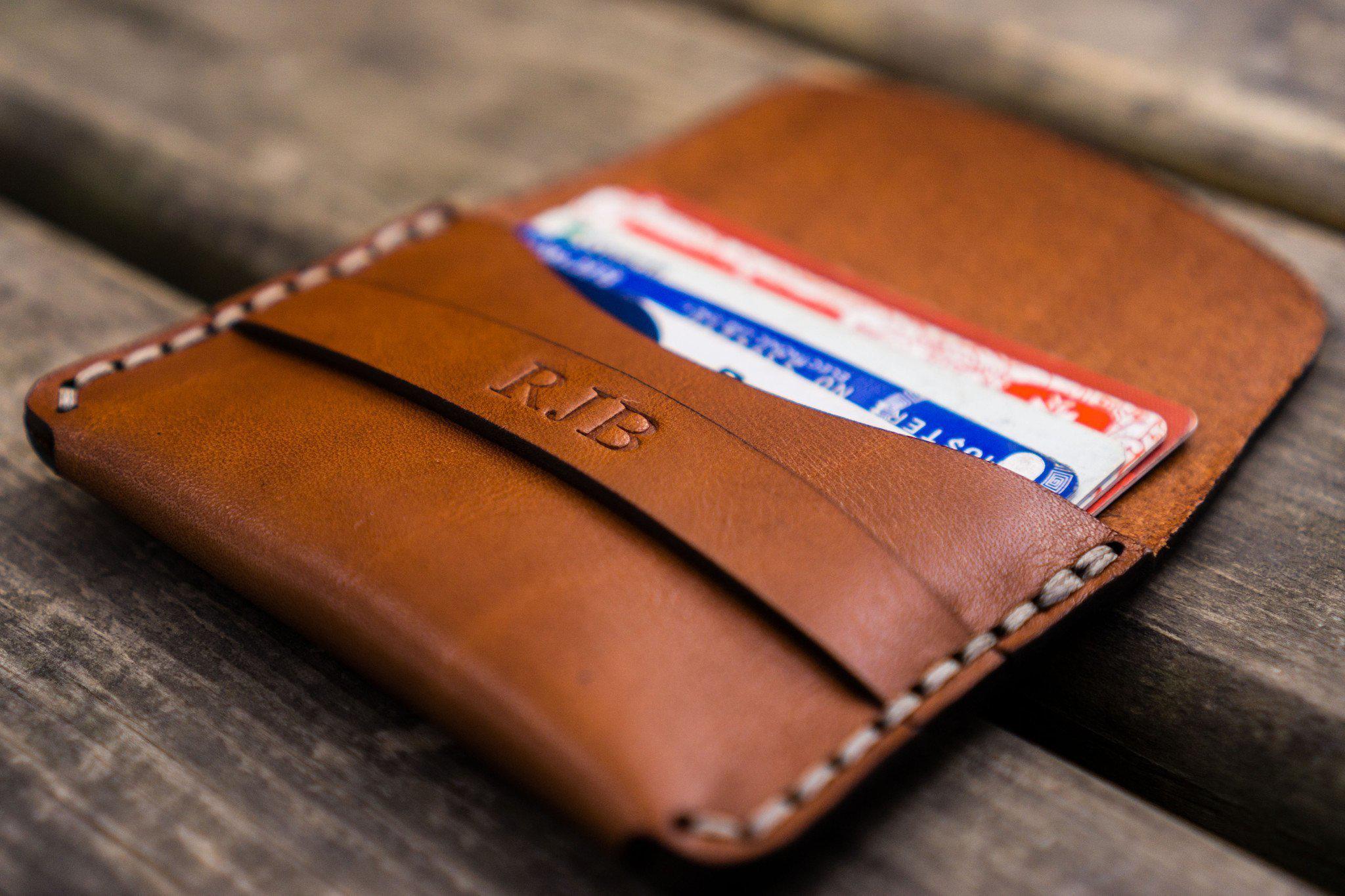 Keep your bank and credit cards safely together with the handmade basic flap leather wallet and credit card holder. There's one internal card pocket that holds up to 5-6 cards. With a stylish minimalist design, its perfect for slipping into your pocket or bag and using as a leather business card holder. You also have the option of personalizing with initials.