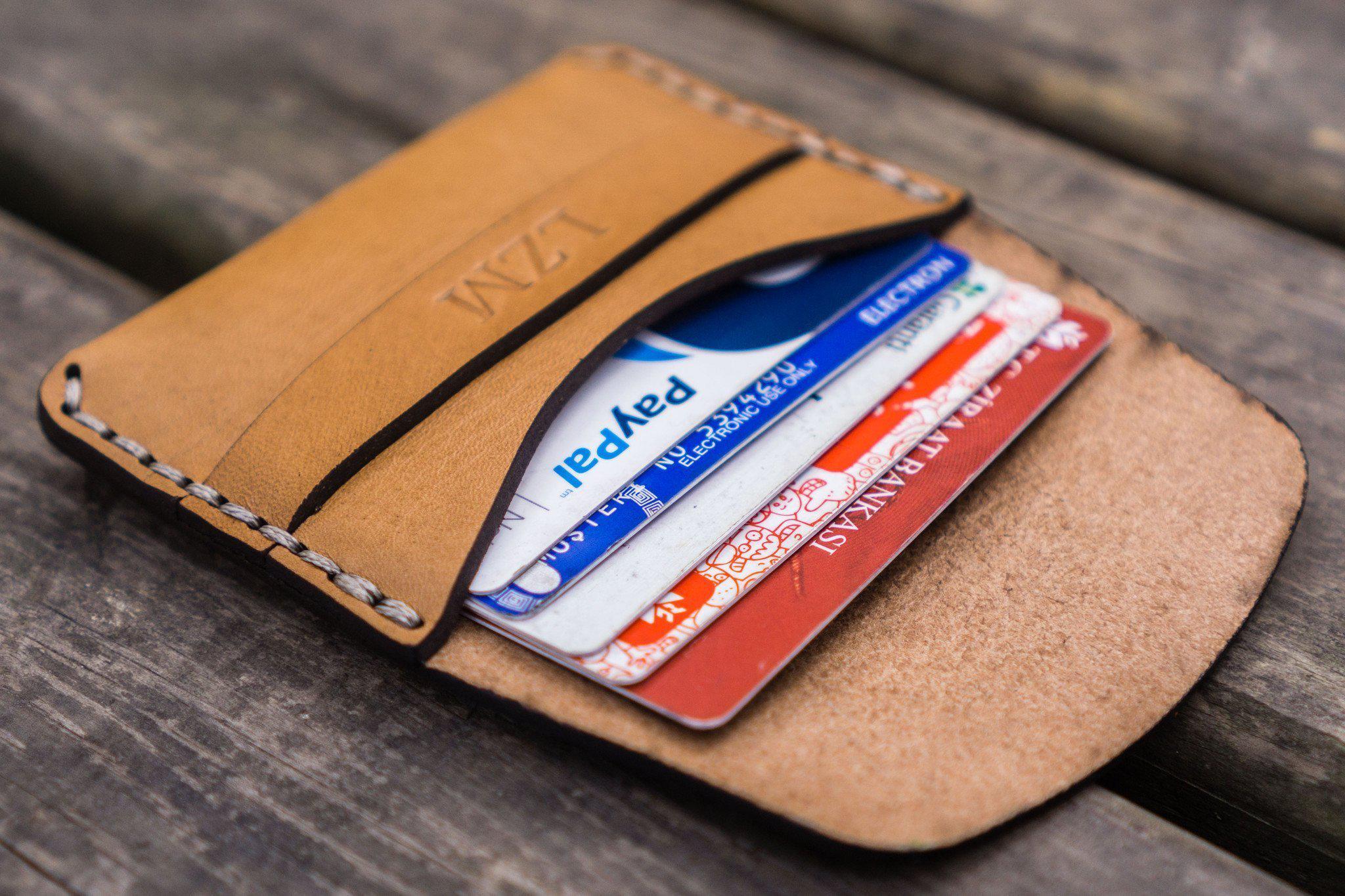 Keep your bank and credit cards safely together with the handmade basic flap leather wallet and credit card holder. There's one internal card pocket that holds up to 5-6 cards. With a stylish minimalist design, its perfect for slipping into your pocket or bag. You also have the option of personalizing with initials.