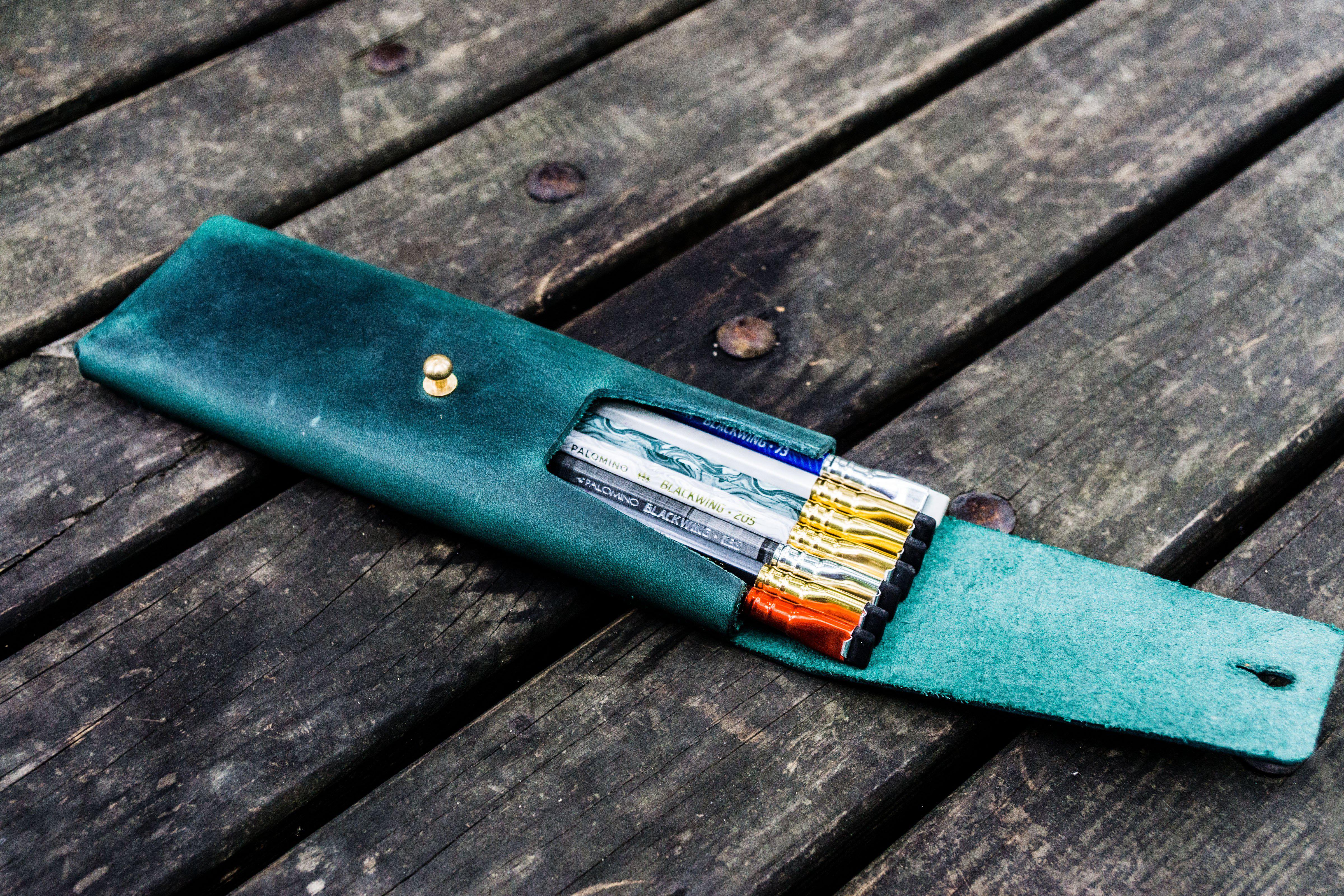 The Charcoal Leather Pencil Case for Blackwing Pencils - Crazy Horse Forest Green